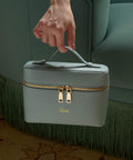 Crafted from faux leather with matching lining, the bag features dual zippers and gold hardware for subtle refinement. Thoughtful details such as the detachable sling and clean silhouette make it a practical yet polished accessory.