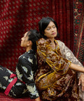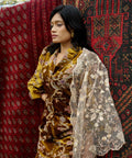 This piece brings a refined presence to festive dressing. Simple in form, this piece allows the depth of the print and fabric to stand out.